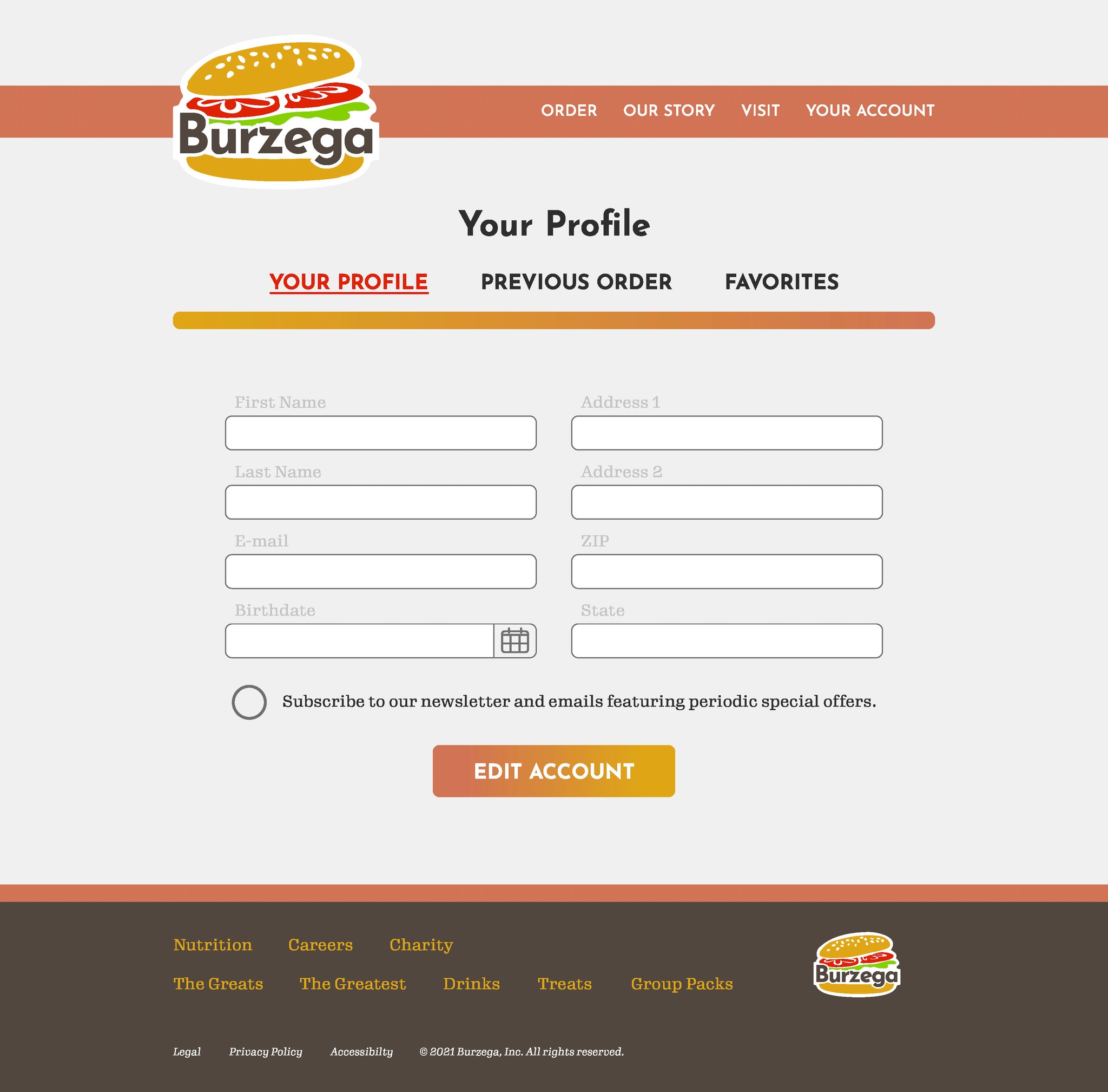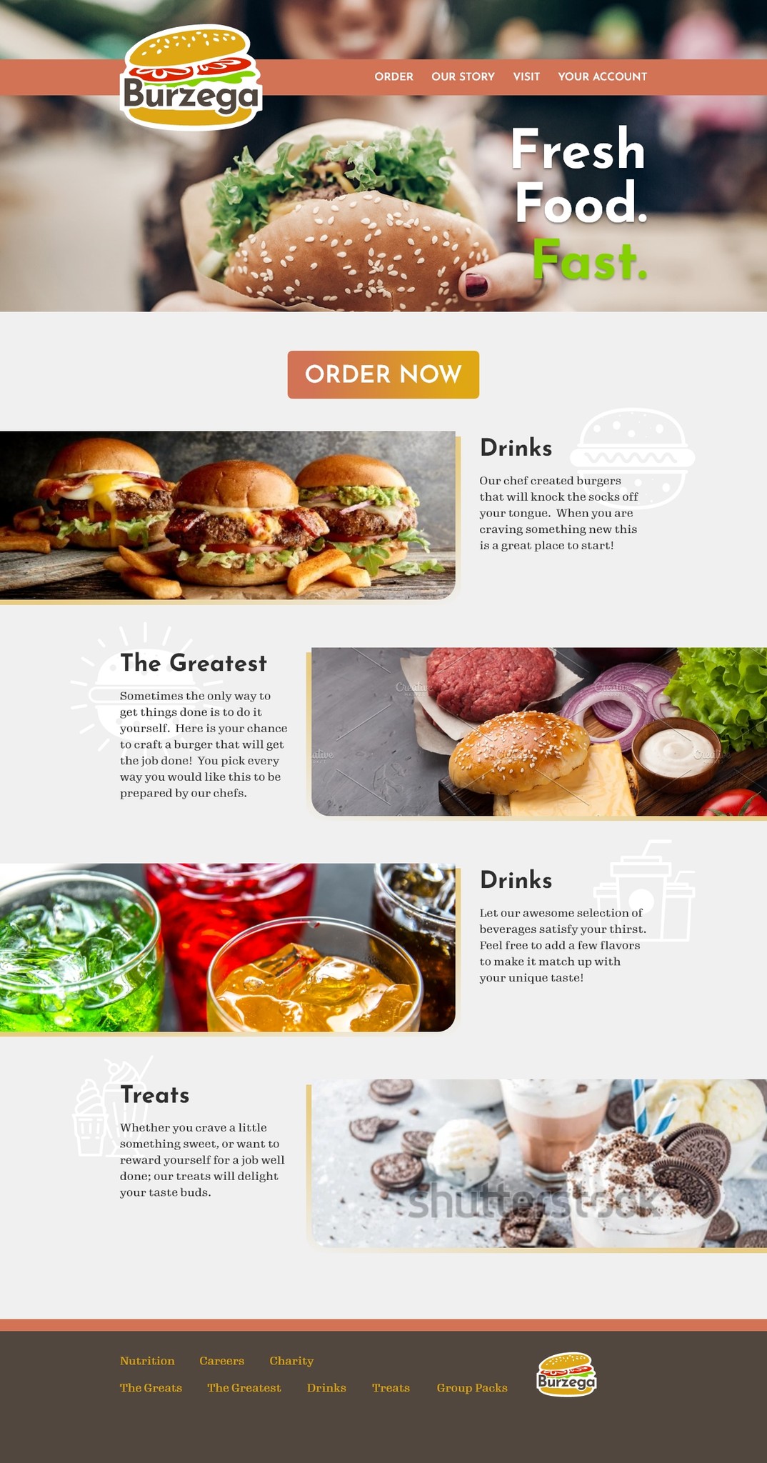 This design was my second project in the CALARTS UX Design program through Coursera. My goal was to create a website for a hypothetical restaurant. The site was required to feature a way to order food, an about us page, and a process allowing food selection.