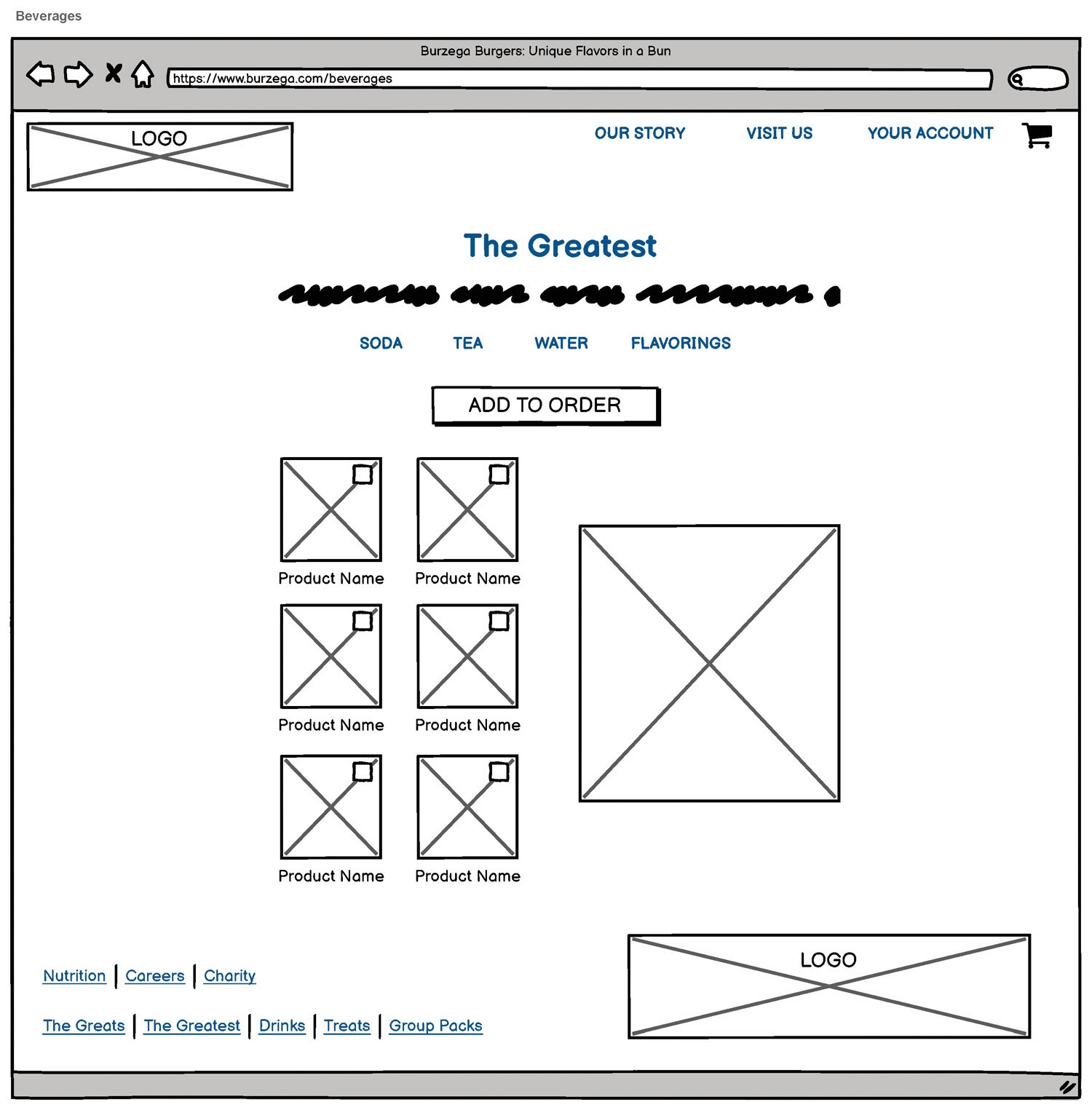 Once I created the site map, I began drafting the wireframes. This step was an interesting exercise because it was my first time using the tool Balsamiq. I found the program was a quick way to rough out wireframe iterations.