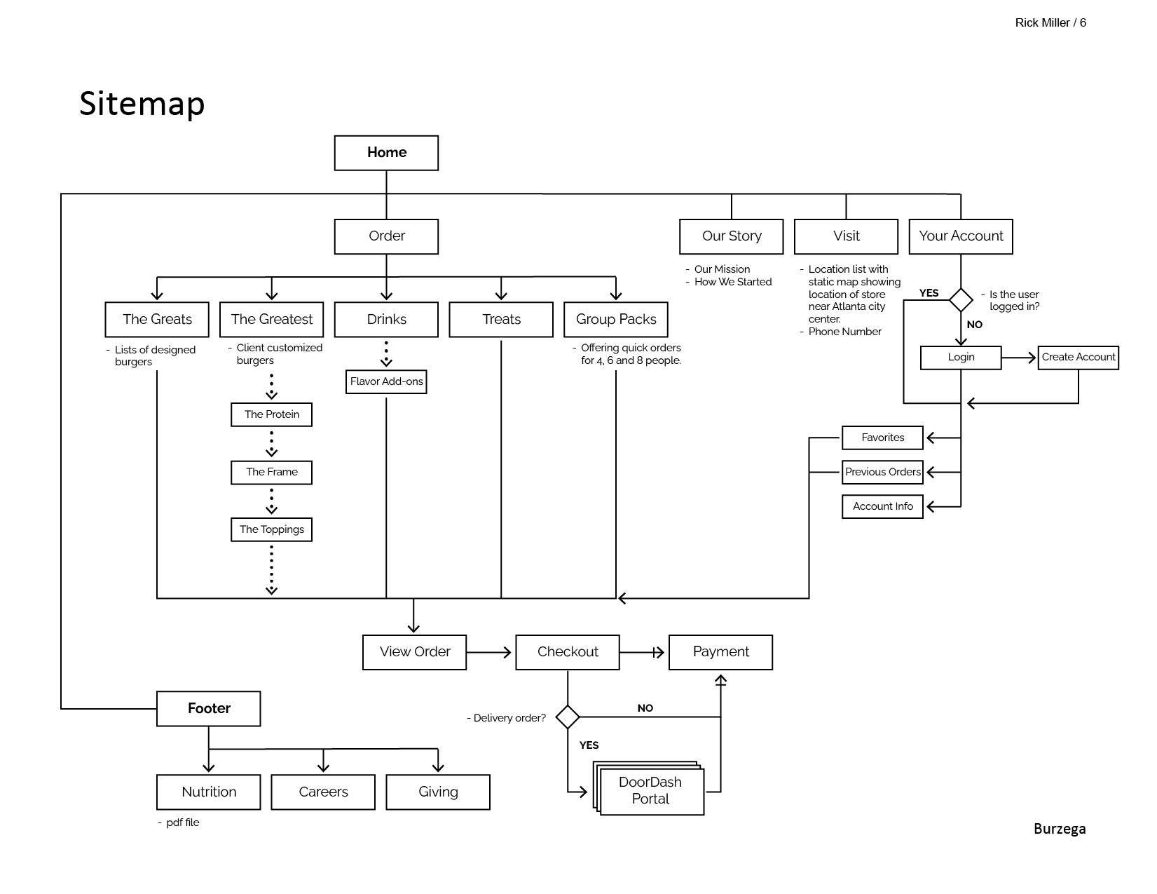 I planned my overall design through a site map to lay out content and potential interactions needed on each web page. I drew this out in Illustrator to quickly block out the plan.