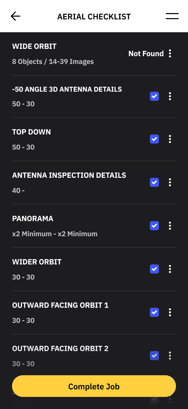 list of photos that need to be captured by drone.